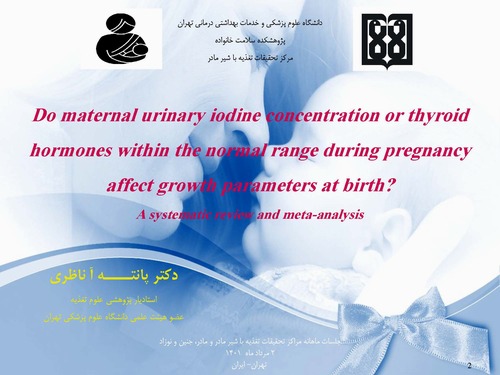 این طرح که به صورت مرور سیستماتیک و متا آنالیز طراحی شده بود به این سوال که کدامیک از پارامترهای غلظت ید ادرار به عنوان شاخص تعیین کننده وضعیت ید و یا سطح هورمونهای تیروئید در محدوده نرمال در طول دوران بارداری میتواند شاخصهای رشد بدو تولد نوزادان را تحت تاثیر قرار دهد، پاسخ داده شد. وی بیان نمود که تلفیق دو حیطه (وضعیت ید و هورمونهای تیروئید) که مرتبط با یکدیگر هستند، اما یک حیطه (وضعیت ید) قابلیت انجام متاآنالیز را داشت و حیطه دیگر (هورمونهای تیروئید) فقط مناسب انجام مرورسیستماتیک بود، از چالشهای اصلی این مطالعه بود. از سوی دیگر انجام آنالیزهای dose-response با وجود اینکه از نقاط قوت این پروژه محسوب میشد، اما جدید بودن آن در این حیطه چالش برانگیز بود. درآخر، پیشنهاد شد بهتر است تمام مطالعات مروری (نقلی و یا سیستماتیک) و متاآنالیز در پایگاه PROSPERO و یا پایگاههای مشابه ثبت گردد، چرا که از جمله محاسن آن شناسایی پروژههای تحقیقاتی مشابه، پیشگیری از انجام مطالعات تکراری و صرفهجویی وقت و انرژی است.