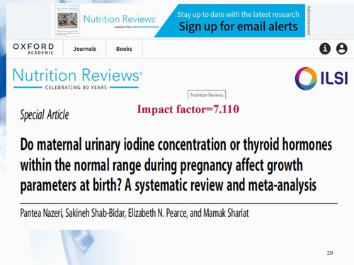 این طرح که به صورت مرور سیستماتیک و متا آنالیز طراحی شده بود به این سوال که کدامیک از پارامترهای غلظت ید ادرار به عنوان شاخص تعیین کننده وضعیت ید و یا سطح هورمونهای تیروئید در محدوده نرمال در طول دوران بارداری میتواند شاخصهای رشد بدو تولد نوزادان را تحت تاثیر قرار دهد، پاسخ داده شد. وی بیان نمود که تلفیق دو حیطه (وضعیت ید و هورمونهای تیروئید) که مرتبط با یکدیگر هستند، اما یک حیطه (وضعیت ید) قابلیت انجام متاآنالیز را داشت و حیطه دیگر (هورمونهای تیروئید) فقط مناسب انجام مرورسیستماتیک بود، از چالشهای اصلی این مطالعه بود. از سوی دیگر انجام آنالیزهای dose-response با وجود اینکه از نقاط قوت این پروژه محسوب میشد، اما جدید بودن آن در این حیطه چالش برانگیز بود. درآخر، پیشنهاد شد بهتر است تمام مطالعات مروری (نقلی و یا سیستماتیک) و متاآنالیز در پایگاه PROSPERO و یا پایگاههای مشابه ثبت گردد، چرا که از جمله محاسن آن شناسایی پروژههای تحقیقاتی مشابه، پیشگیری از انجام مطالعات تکراری و صرفهجویی وقت و انرژی است.